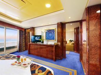 Kajuta s balkónem: 22 - 26 m², kajuta s manželskou postelí (na požádání 2 oddělené postele) a rozkládací pohovka. Klimatizace, koupelna se sprchou nebo vanou a WC, toaletní stolek, prostorná skříň, interaktivní TV, telefon, sejf, vysoušeč vlasů. Balkony se stolkem a židlemi. Některé kajuty mají omezený výhled.