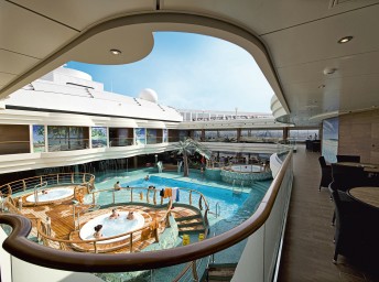 Třípatrový Yacht Club je exkluzivním privátním místem pro náročné klienty. Součástí Yacht Clubu jsou nejen různé luxusní typy kajut a suite, ale také venkovní paluba s lehátky a bazénem, salon s barem Top Sail Lounge s panoramatickými výhledy a restaurace. Club má i vlastní recepci se službami consierge a hostům je k dispozici komorník.