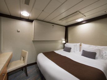 Všechny kajuty jsou příjemně zařízené, mají koupelnu se sprchou a WC, dostatek úložných prostor, 2 lůžka (někdy možnost přistýlek), toaletku se zrcadlem a fénem, TV, klimatizaci a trezor.
