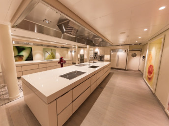 Hosté na palubě mohou navštívit kuchařskou školu Kochstudio s interaktivními kuchařskými kurzy.
