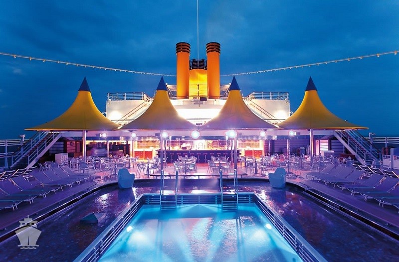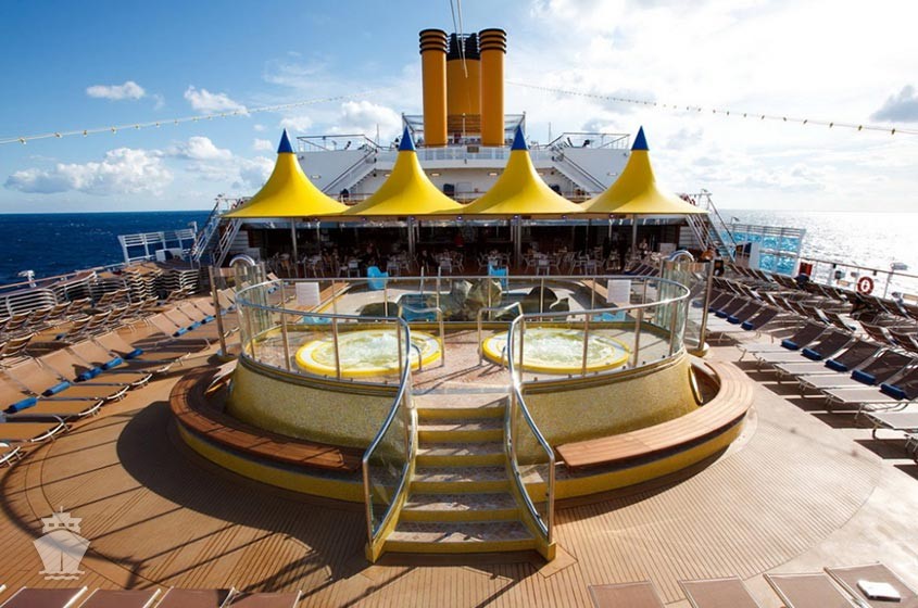 - otevřený bazén na horní palubě, 1 bazén s posuvnou prosklenou střechou, bazén pro děti