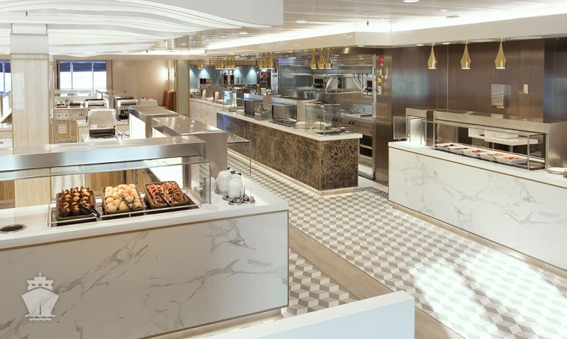 - Queens Grill Restaurant (exkluzivní restaurace určená pro hosty v Suites): večeře 18:30 až 21:00