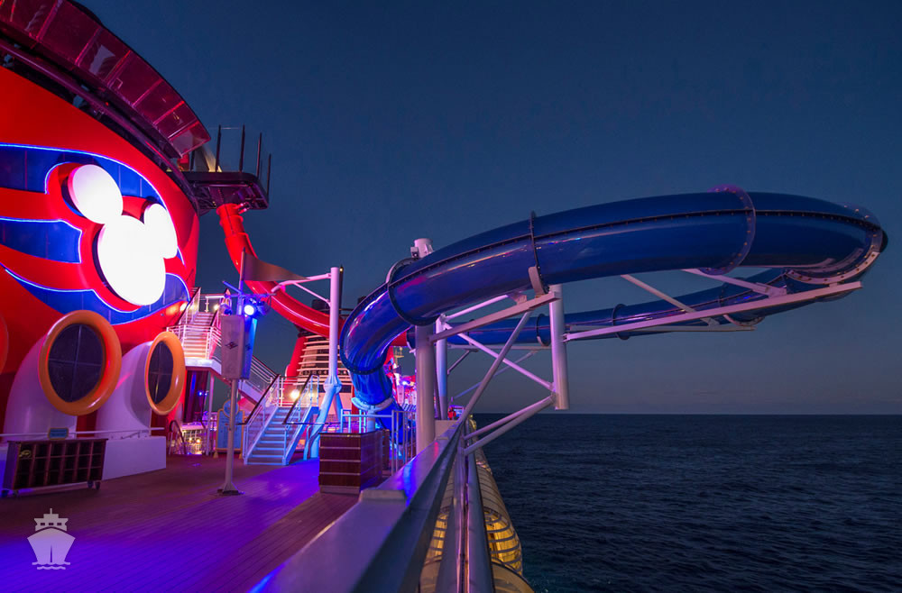 - Walt Disney Magic Theatre (977 míst, přes 3 paluby; živá hudba, vzdušné akrobatické představení, 3D kino; 2 večerní představení v 18:15 a 20:30)