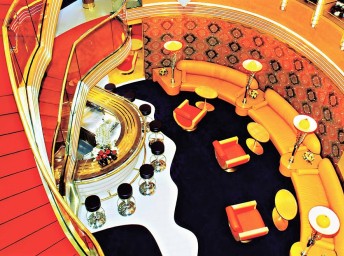 Srdcem Oosterdamu je nádherný křišťálový Waterford globus, prominentně vystavený v třípodlažním atriu a je symbolem více než 140-leté historie této lodní společnosti. Loď je zařízena v tradičním stylu, typickém pro Holland America: teplá paleta barev podtrhuje extenzivně použití krystalu, mramoru, vykládaného dřeva a mědi, půvabné květinové dekorace, vzácné originály uměleckých děl a starožitnosti, jakož i a palubní promenáda plně vykládaná teakovým dřevem s čalouněnými lehátky a křesly.