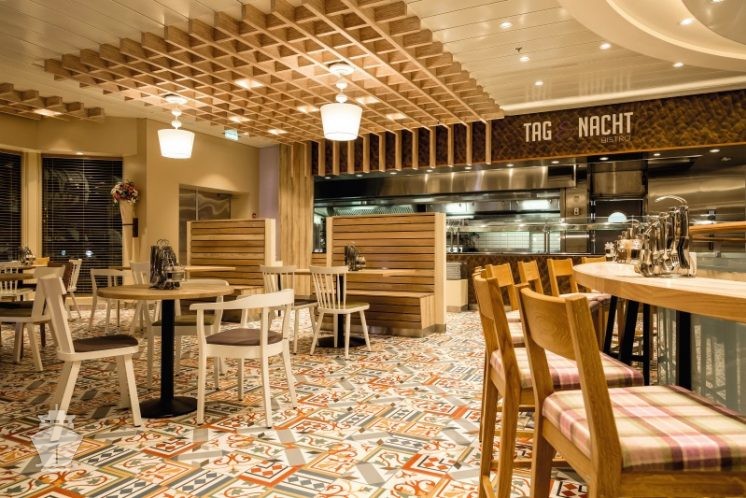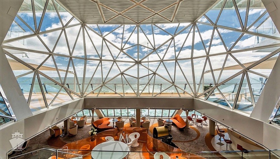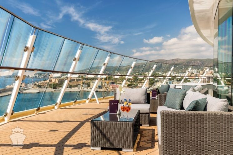 Modrý balkon "The Blauer Balkong" na 14. palubě - vyhlídková 11 m2 plošina ze skla ve výšce 37m vám dá pocit, že se vznášíte nad mořem