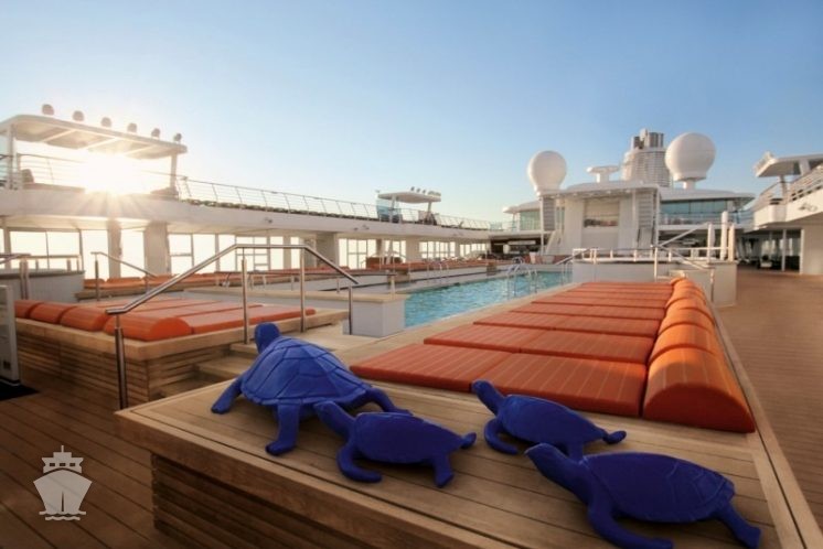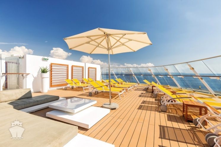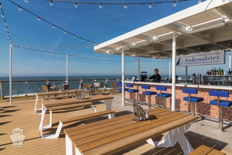Velká obrazovka na promítání filmů na vnější palubě Sportovní paluba na volejbal, fotbal a basketbal Výborné Spa & Meer, plně vybavené fitness centrum K dispozici jsou i sportovní a elektrická kola