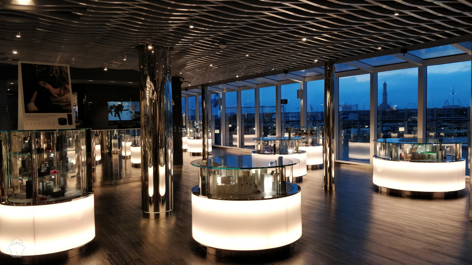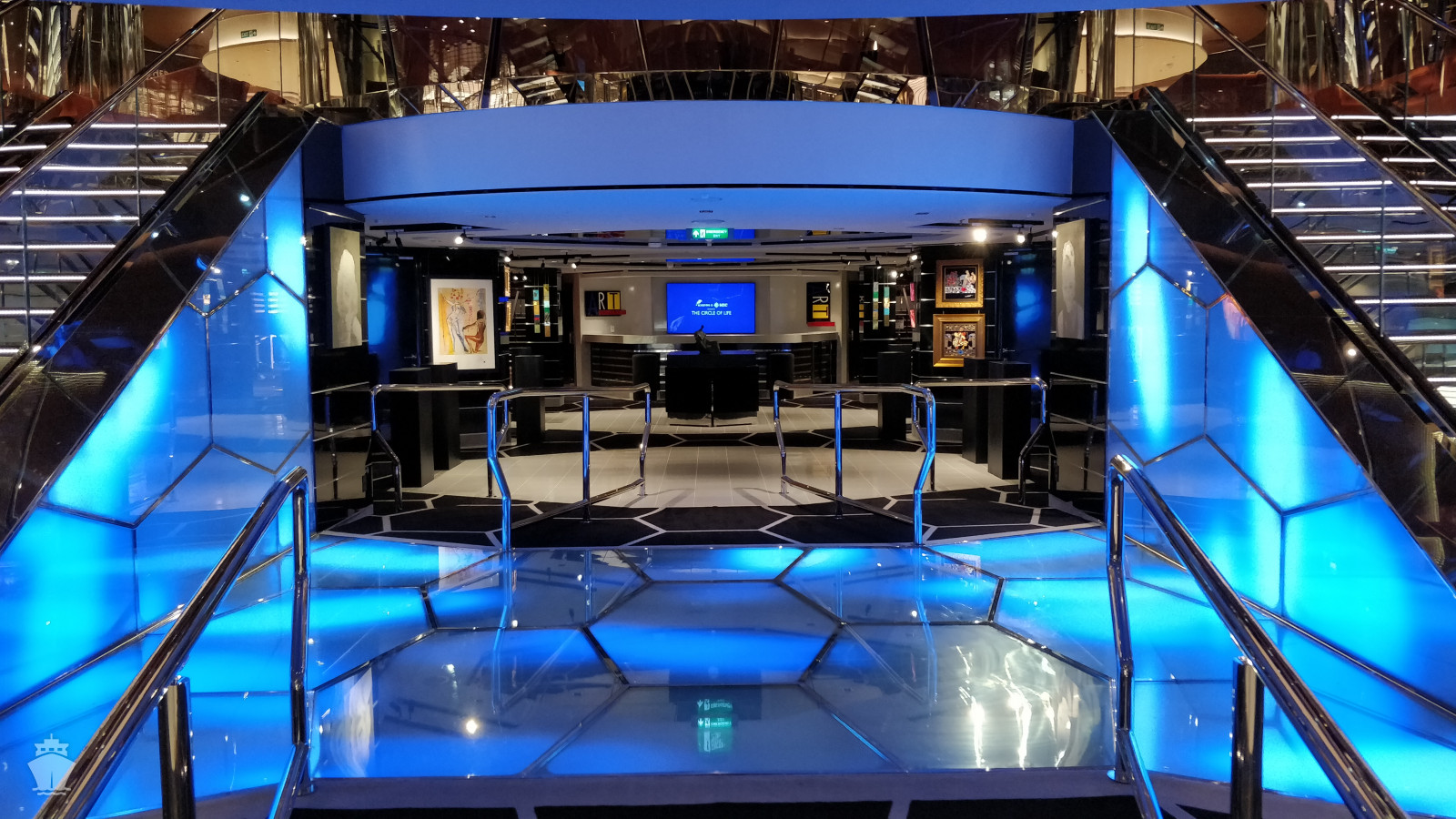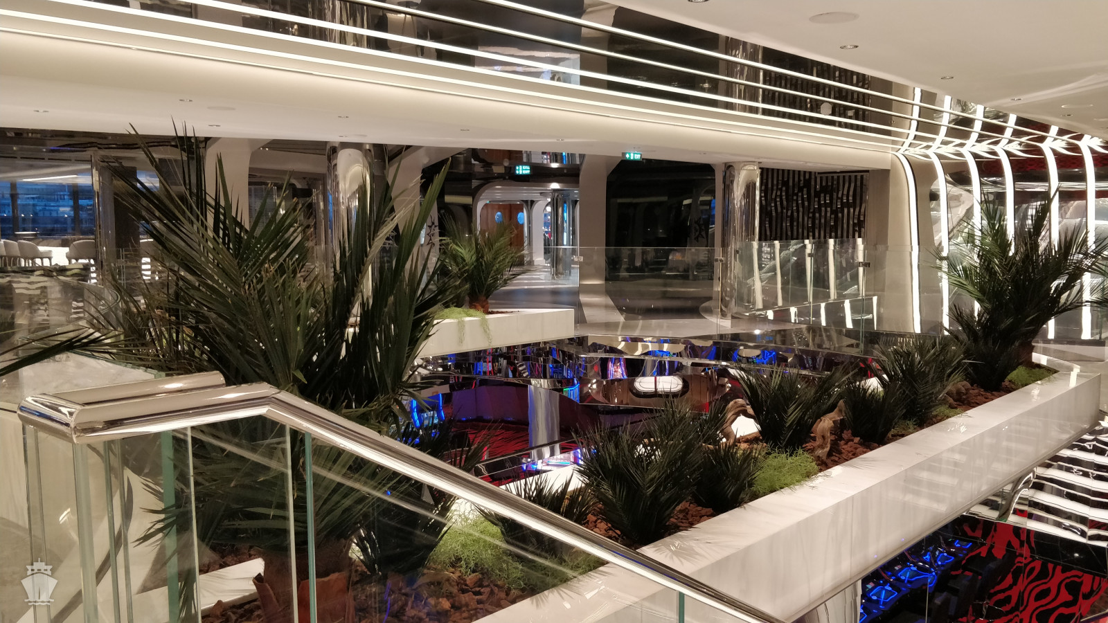 - promenáda kolem celé lodi zahrnující i průhlednou podlahu