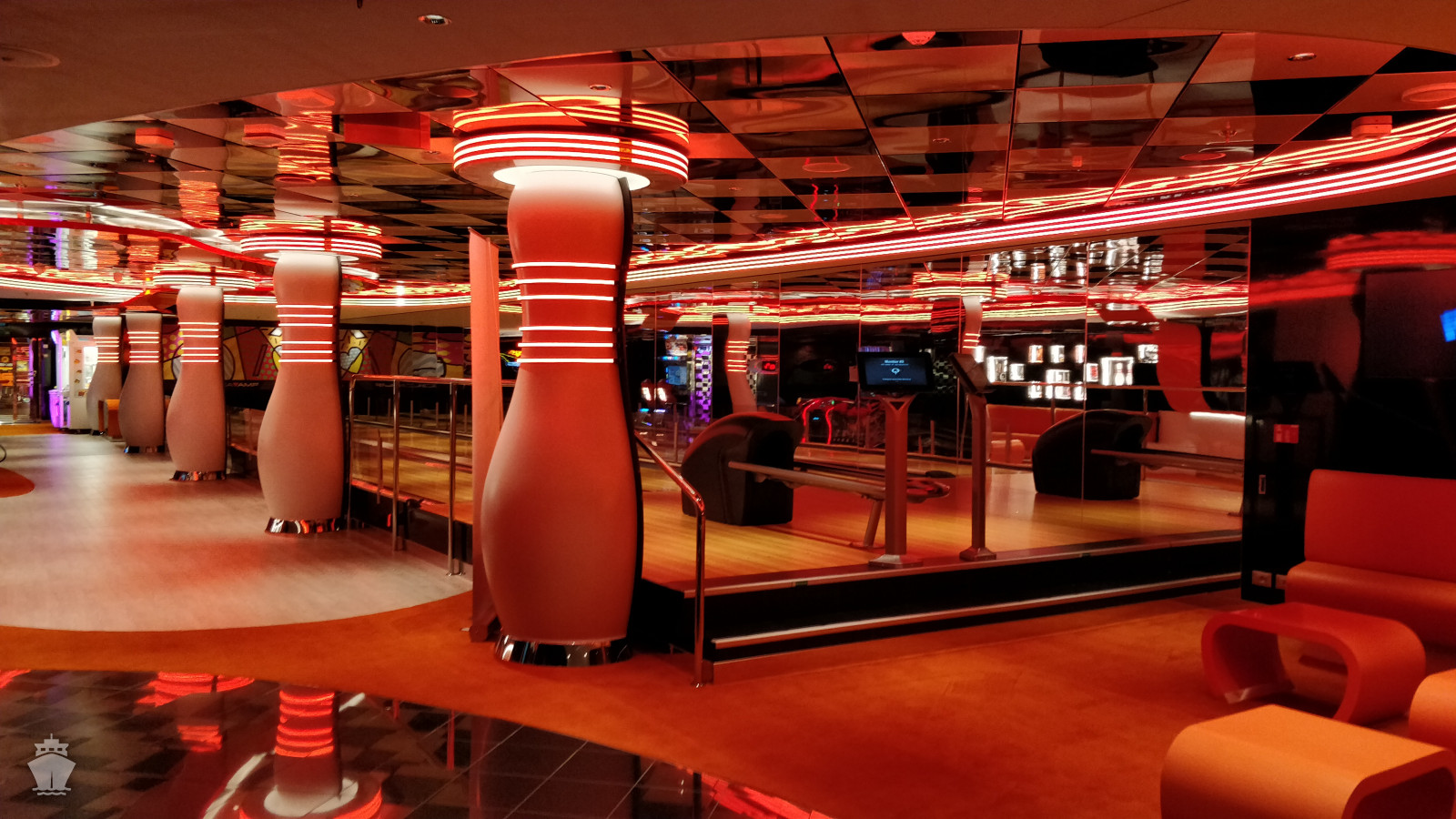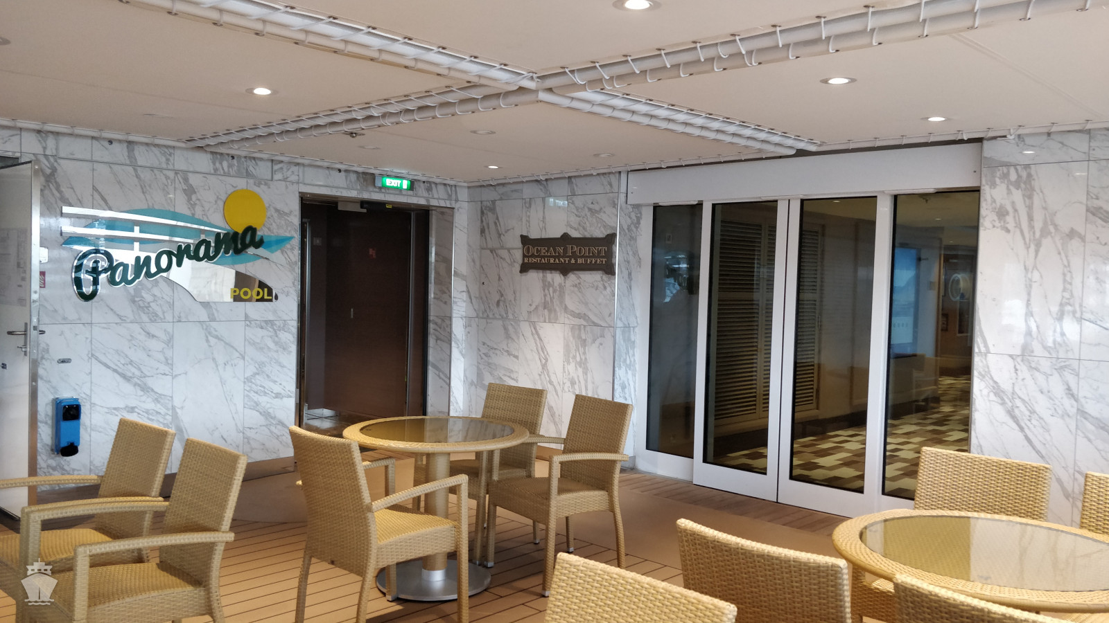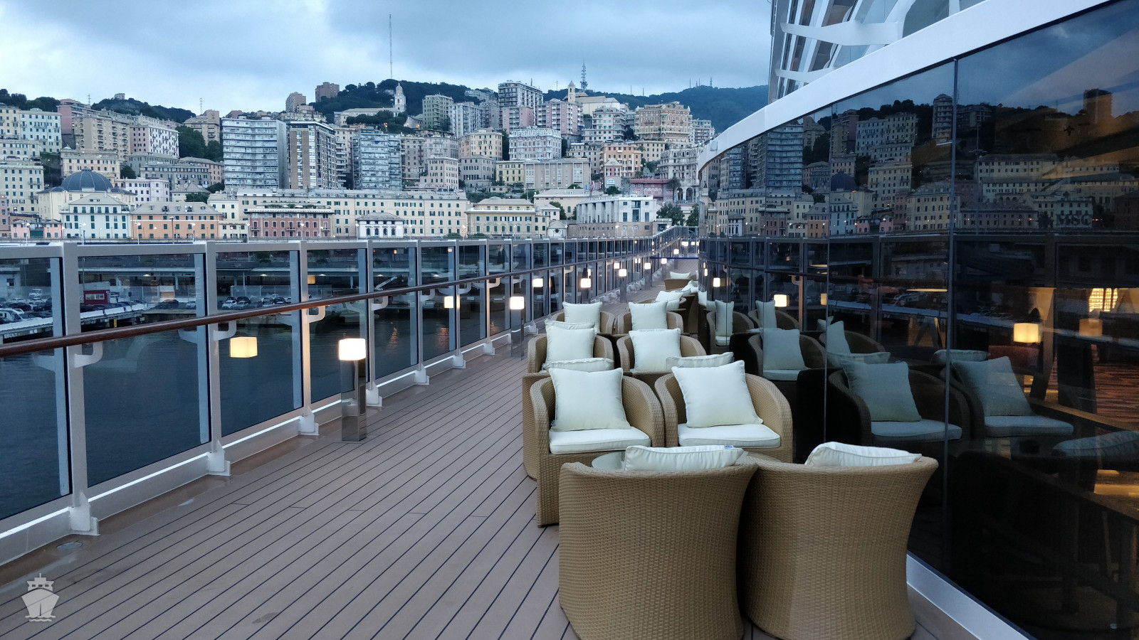 - promenáda kolem celé lodi zahrnující i průhlednou podlahu