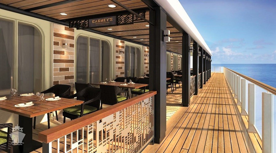 - Spinnaker Lounge – panoramatický salonek na přídi s výhledem na moře