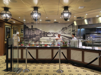 V ceně plavby je nadstandardní plná penze v hlavní restauraci - Main Dining Room, velkolepé bufety ve Windjammer Marketplace, občerstvení v Park Café, pizza a některé nápoje (voda, limonáda, ledový čaj z automatů v bufetových restauracích).