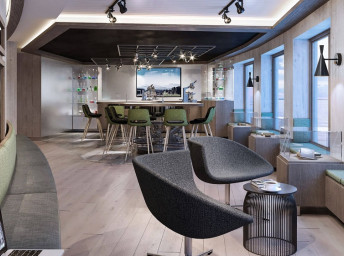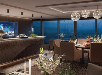 Apartmán s 1 nebo 2 místnostmi na 7. a 8. palubě. Obývací část s Tv, jídelní stůl, kávovar, minibar a balkon nebo neotevíratelné panoramatické okno.