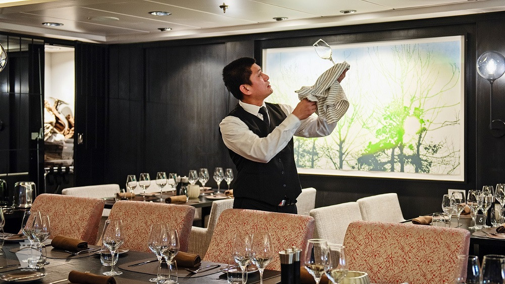 Hlavná reštaurácia Aune v tradičnom štýle, kde sa podávajú hlavné jedlá; celodenne otvorená Fredheim na bežné medzinárodné stolovanie; a Lindstrøm, exkluzívna top reštaurácia zahrnutá v cene plavby pre hostí Suite a pre ostatných na rezerváciu a za príplatok. Každá z nich ponúka kuchyňu s jedinečným charakterom, s využitím bio a lokálnych surovín.