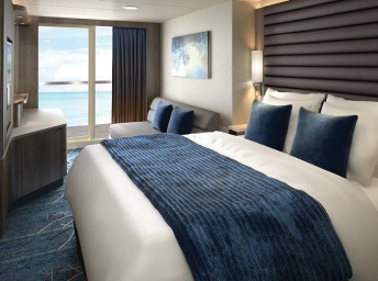 koupelna se sprchou a WC, 2 lůžka, v některých kajutách možnost přistýlek, toaletní stolek, úložné prostory, interaktivní TV, sejf, telefon, vysoušeč vlasů.
