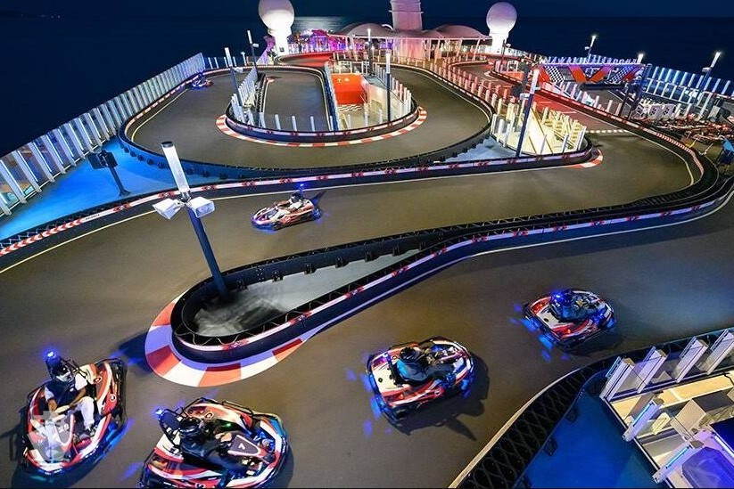 - Go-Kart dráha – elektrická motokárová dráha přes dvě paluby