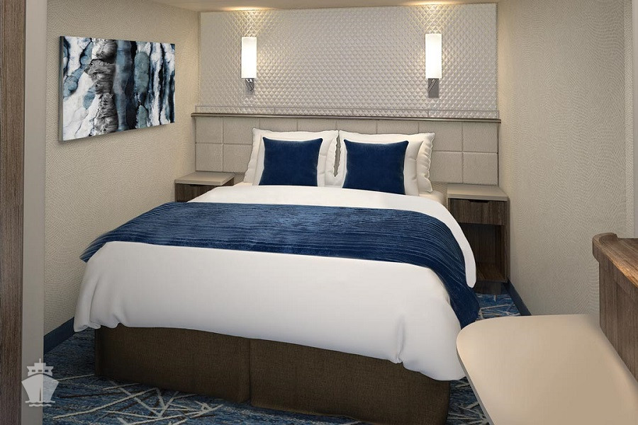 koupelna se sprchou a WC, 2 lůžka, v některých kajutách možnost přistýlek, toaletní stolek, úložné prostory, interaktivní TV, sejf, telefon, vysoušeč vlasů.