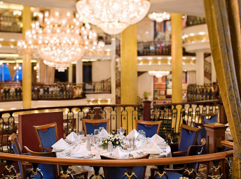 V ceně plavby je nadstandardní plná penze v hlavní restauraci - Main Dining Room, velkolepé bufety ve Windjammer Marketplace, občerstvení v Park Café, pizza a některé nápoje (voda, limonáda, ledový čaj z automatů v bufetových restauracích).