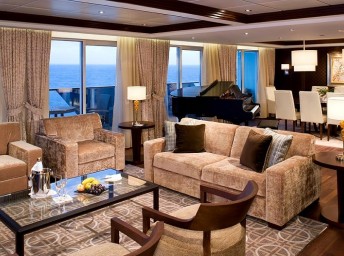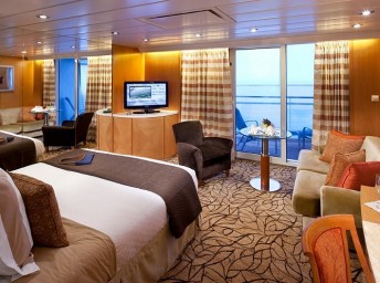 Základní vybavení všech kajut: koupelna s WC, fén, toaletní potřeby; lůžka, dostatek úložných prostor, toaletka se zrcadlem, individuálně nastavitelná klimatizace, TV, župany, trezor, minibar.