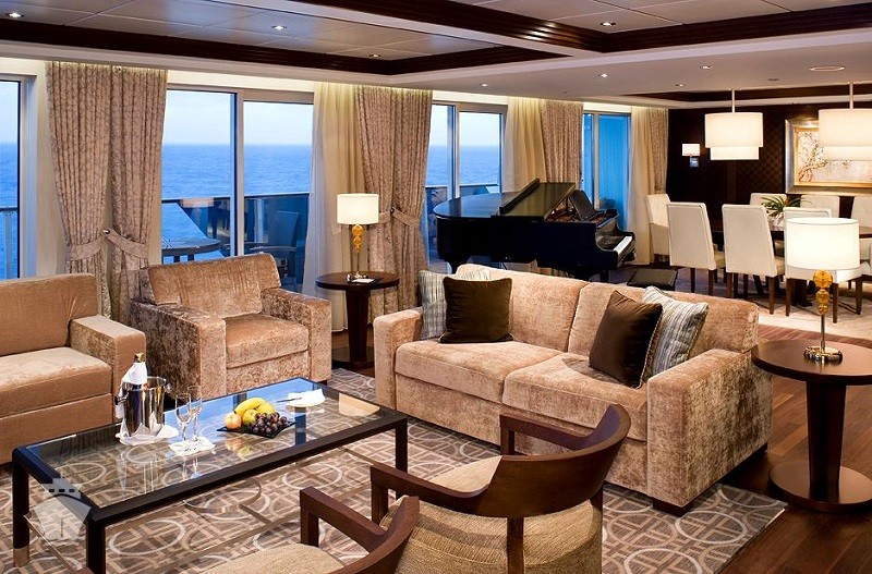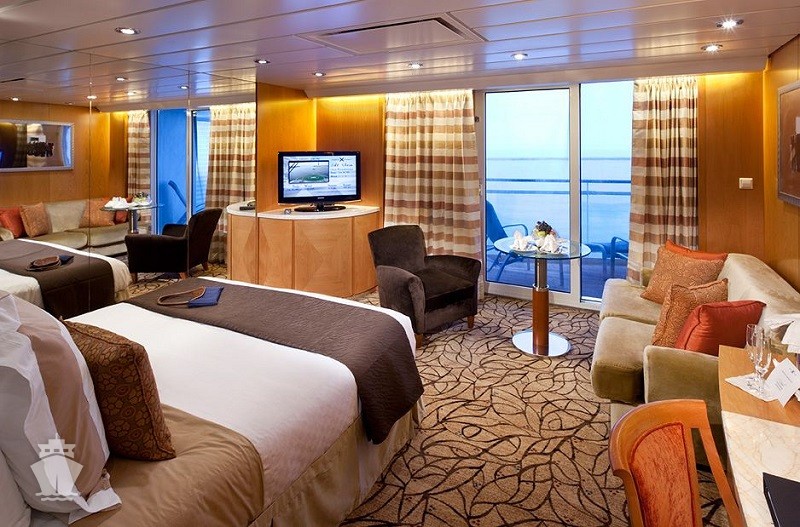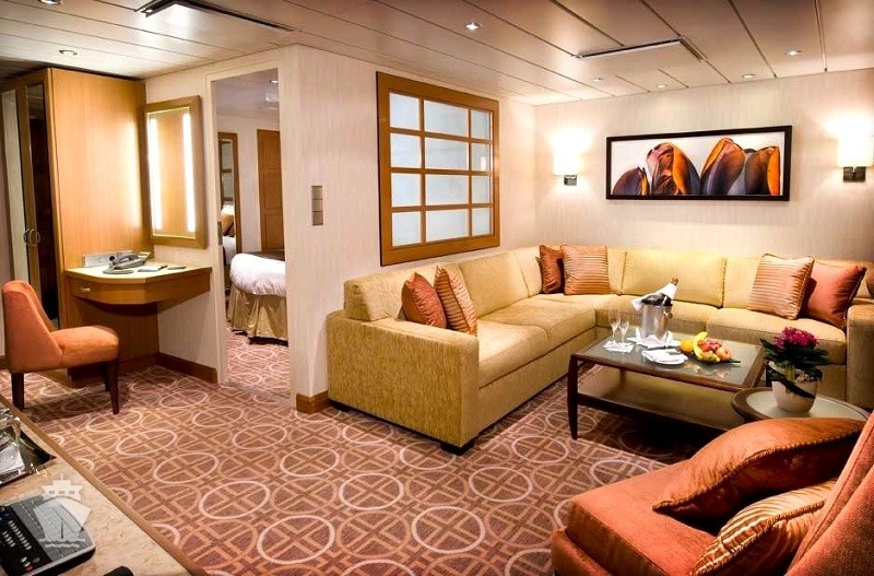 Základní vybavení všech kajut: koupelna s WC, fén, toaletní potřeby; lůžka, dostatek úložných prostor, toaletka se zrcadlem, individuálně nastavitelná klimatizace, TV, župany, trezor, minibar.