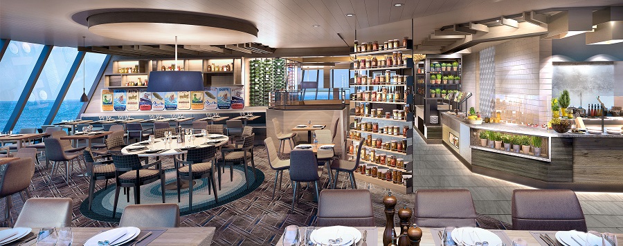 ** Na palubě každé bude výběr 3 různých restaurací: hlavní restaurace Aune v tradičním stylu, kde se podávají hlavní jídla; celodenně otevřená Fredheim na běžné mezinárodní stolování; a Lindström, exkluzivní top restaurace zahrnuta v ceně plavby pro hosty Suite a pro ostatní na rezervaci a za příplatek. Každá z nich nabídne kuchyni s jedinečným charakterem, s využitím bio a lokálních surovin.