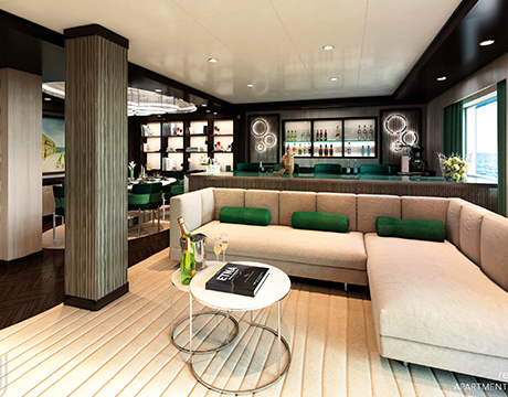 Zcela nové, mimořádně prostorné apartmány Owners Suites exkluzivně pro třídu World Class: 2 velké suity o celkové rozloze více než 150 m² (včetně balkonu). Každá se skládá z dvoulůžkové ložnice se šatníkem, koupelny s velkou vanou a dále z oddělené obývací a jídelní části s celoplošnými okny. Třešničkou na dortu je vlastní prostorný balkon s vířivkou a "al fresco" jídelní část.- Dvoupodlažní apartmány Duplex Suites s balkonem: Celé spodní patro těchto apartmánů je věnováno luxusní relaxaci s jídelní částí, salonkem a malou toaletou. Hlavní ložnice je v patře a má vlastní koupelnu vybavenou vanou. Hosté mají navíc k dispozici až dva soukromé balkony, přičemž ten na spodní palubě je vybaven soukromou vířivkou a sedací soupravou, ten na horní palubě má pohodlná lehátka na opalování.