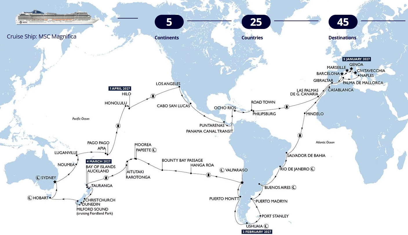 Plavba kolem světa lodí MSC Magnifica