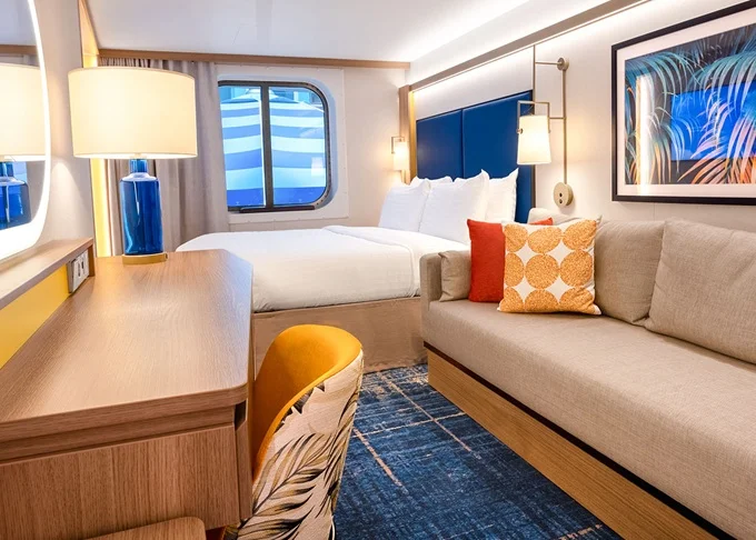 | T5 - Vnitřní kajuta s oknem / Surfside Family 17 m². Neotevíratelné okno s výhledem na čtvrť Surfside. 8. paluba vpředu. Max 4 osoby. | 127 479 Kč 31 870 Kč za osobu |