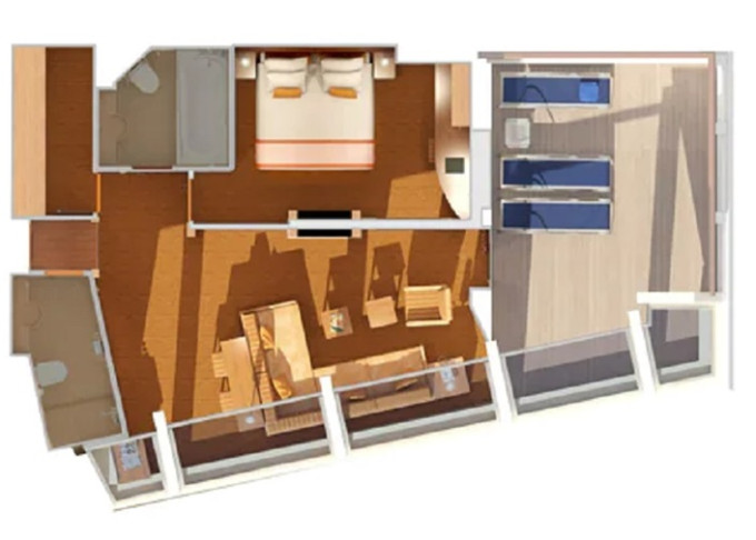 | CS - Captain's Suite 46 m² / balkon 18 m². Výhody Suite. Max 5 osob. | 174 832 Kč 87 416 Kč za osobu |
