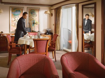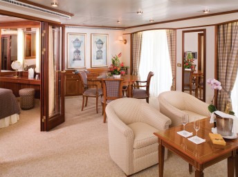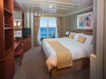 | SV - Superior Veranda Suite 32 m² (včetně balkona). Horní paluby. Ložnice s obývací částí. | 380 833 Kč 190 416 Kč za osobu | ||