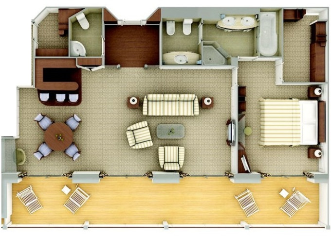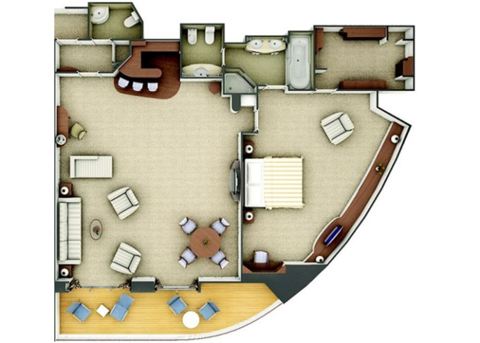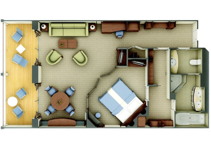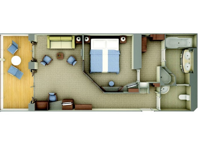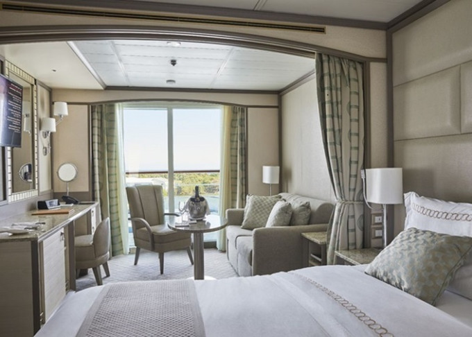 | SV - Superior Veranda Suite 32 m² (včetně balkona). Horní paluby. Ložnice s obývací částí. | 380 833 Kč 190 416 Kč za osobu | ||