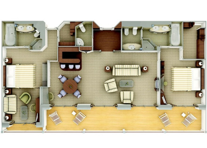 | SL - Silver Suite 61-65 m² (včetně verandy). Ložnice, oddělená obývací časť a jídelní část, vírívka. | 581 271 Kč 581 271 Kč za osobu |