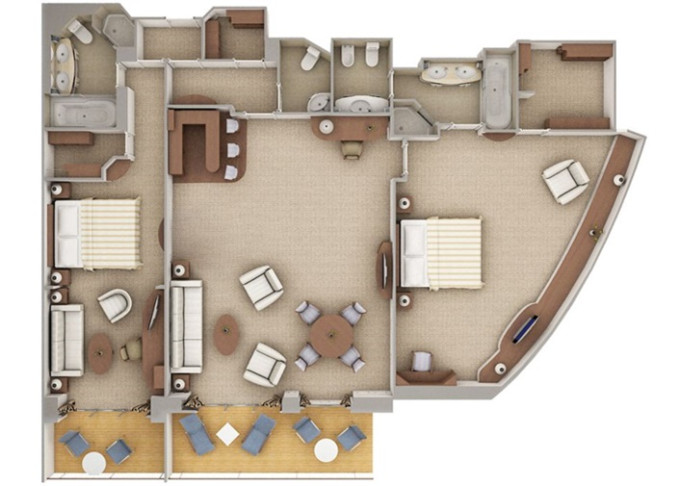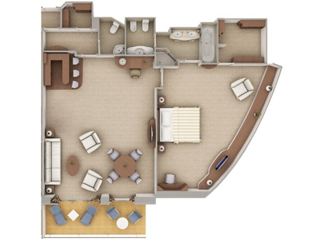 | ME - Medallion Suite 49 m² (včetně balkona). Ložnice, oddělená obývací a jídelní část. | 425 932 Kč 212 966 Kč za osobu | ||