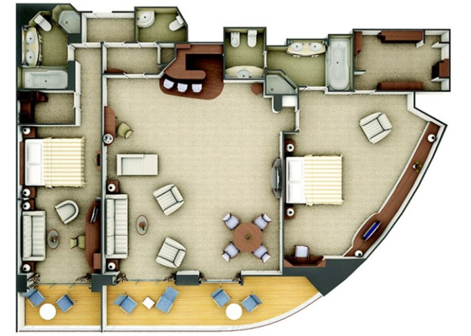 | O2 - Owner's Suite 2 117 m² (včetně balkonu).Owners Suite O1 spojená s Vista Suite. | 2 585 655 Kč 646 414 Kč za osobu |
