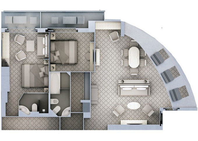 | G2 - Grand Suite 2 122 m² (včetně 2 balkonov). Grand Suite G1 spojená s Veranda Suite. | 3 453 971 Kč 1 726 985 Kč za osobu |