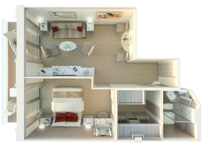 | ME - Medallion Suite 41-62 m² (včetně balkona). Ložnice a oddělená obývací časť. | 1 749 544 Kč 1 749 544 Kč za osobu |