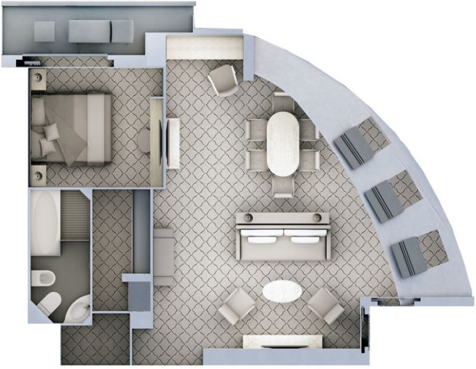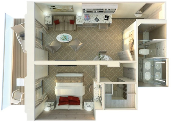 | O1 - Owner's Suite 1 55 m² (včetně balkonu). Oddělená obývací část, jídelna, ložnice. | 2 576 692 Kč 2 576 692 Kč za osobu | ||