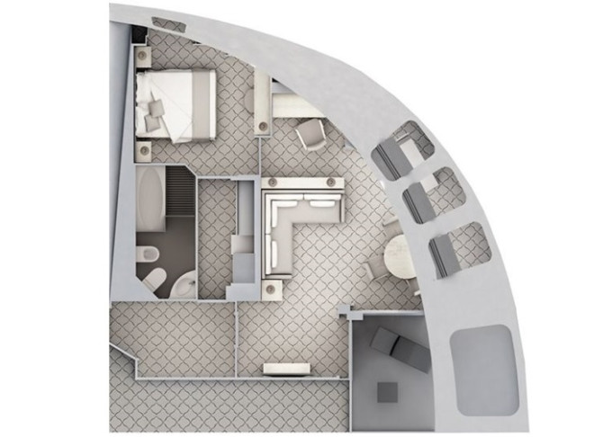 | O1 - Owner's Suite 1 55 m² (včetně balkonu). Oddělená obývací část, jídelna, ložnice. | 2 576 692 Kč 1 288 346 Kč za osobu | ||