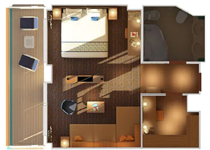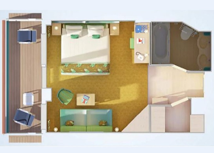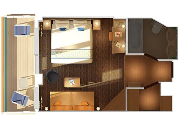 | HI - Kajuta Havana s väčším balkonem Aft Extended 17 m² / balkon 7 m². Vzadu. Tropický styl, vstup do exkluzivní zóny Havana. | 57 499 Kč 28 750 Kč za osobu | ||