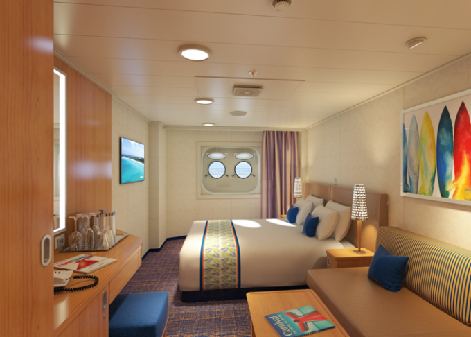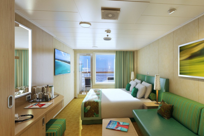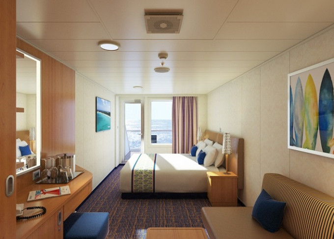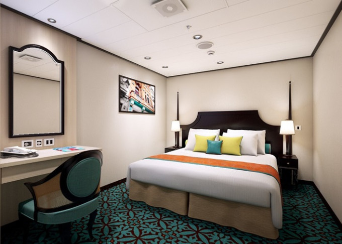 Vybavení ve všech kajutách: koupelna se sprchou, postele a dostatek úložných prostor, TV, telefon, fén, sejf, minibar, individuálně nastavitelná klimatizace, plážové osušky k použití během plavby.