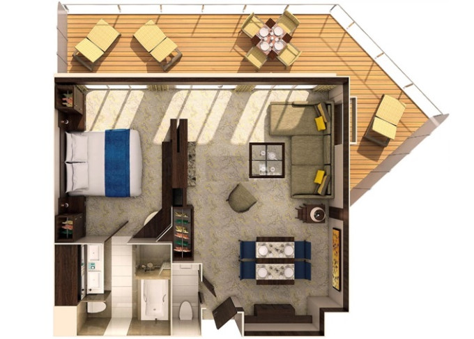 | J1 - Junior Suite s velkým balkonem 25 m² / balkon 15 m². Výhody Royal Suite Class. 6. až 13. paluba. Max 4-5 osob. | 126 802 Kč 126 802 Kč za osobu |