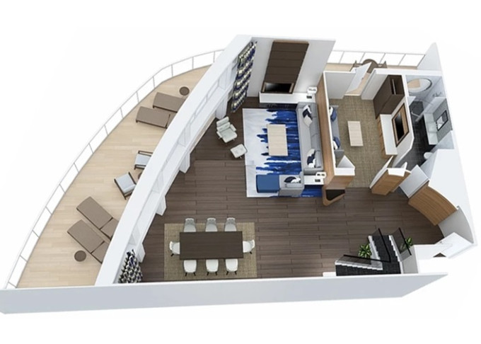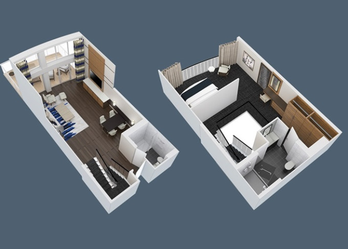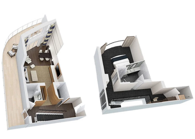 | SL - Sky Loft Suite s balkonem 62 m² / balkon 17 m². 2-podlažní apartmán. Výhody Royal Suite Class. 8/10. paluba. Max 4 osoby. | 368 005 Kč 92 001 Kč za osobu | ||
