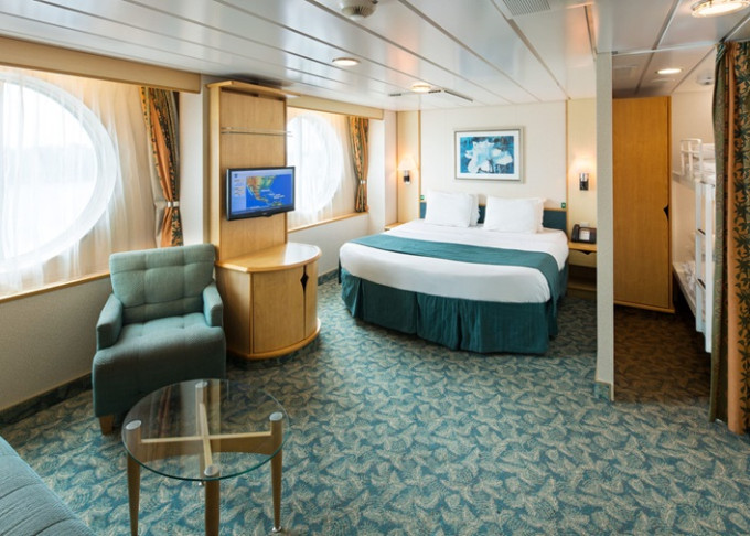 | VP - Ocean View Panoramic Suite (bez balkonu) 38 m². Panoramatické neotevíratelné okna. Výhody Royal Suite Class. 12. paluba. Max 4 osoby. | 67 197 Kč 67 197 Kč za osobu |