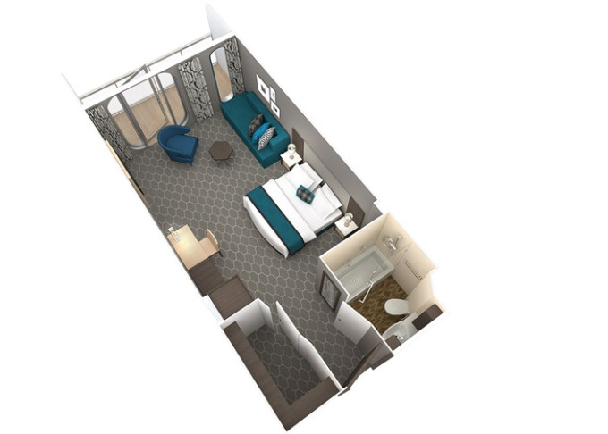 | 2T - Vnitřní kajuta Promenade View / s oknem 18 m². Neotevíratelné okno (výhled na Promenade). 7. paluba. Max 4 osoby. | 87 592 Kč 21 898 Kč za osobu | ||