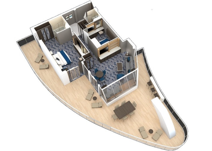 | A1 - Spacious AquaTheater Suite s balkonem / 2 ložnice 76 m² / balkon 72 m². Výhody Royal Suite Class. 8. paluba. Max 8 osob. | 449 734 Kč 449 734 Kč za osobu |