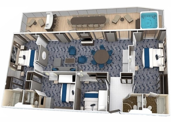 | VS - Villa Suite / 4 ložnice 106 m² / balkon 44 m². Výhody Royal Suite Class. 12. paluba. Max 14 osob. | 475 290 Kč 475 290 Kč za osobu |