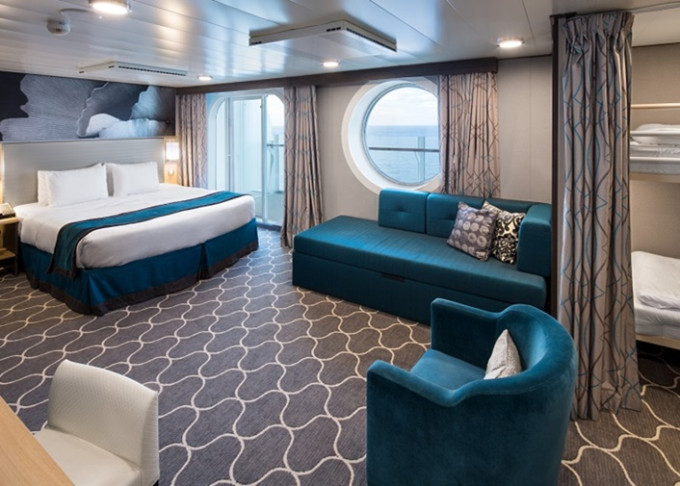 | J4 - Junior Suite s balkonem 26,5 m² / balkon 7,5 m². Výhody Royal Suite Class. 6. až 12. paluba. Max 5 osob. | 190 066 Kč 190 066 Kč za osobu |