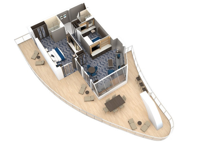 | A2 - Spacious AquaTheater Suite s balkonem / 2 ložnice 68,5 m² / balkon 64,5 m². Výhody Royal Suite Class. 9/10. paluba. Max 8 osob. | 453 893 Kč 453 893 Kč za osobu |