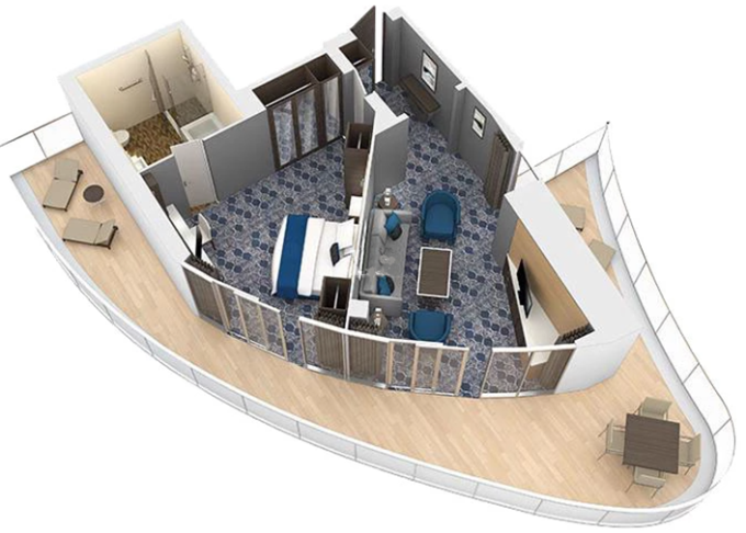 | A2 - AquaTheatre Suite s balkonem / 2 ložnice 62,5 m² / balkon 56 m². Výhody Royal Suite Class. 9/10. paluba. Max 8 osob. | 389 577 Kč 129 859 Kč za osobu |