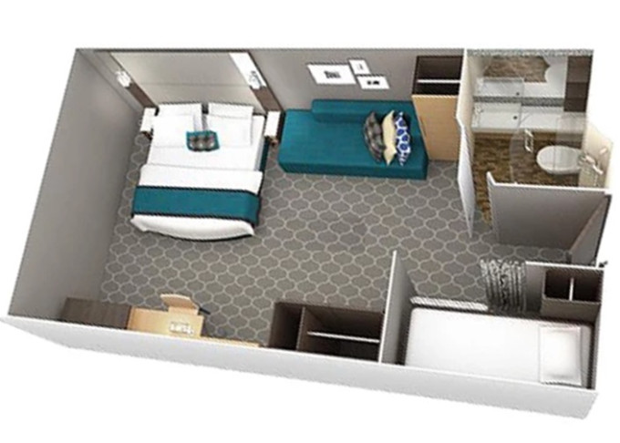 | 2T - Vnitřní kajuta Promenade View / s oknem 18 m². Neotevíratelné okno (výhled na Promenade). 7/11/12. paluba. Max 5 osob. | 94 807 Kč 23 702 Kč za osobu | ||