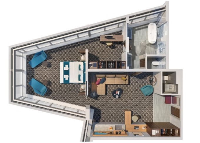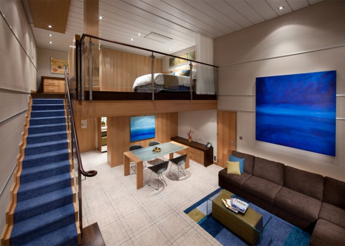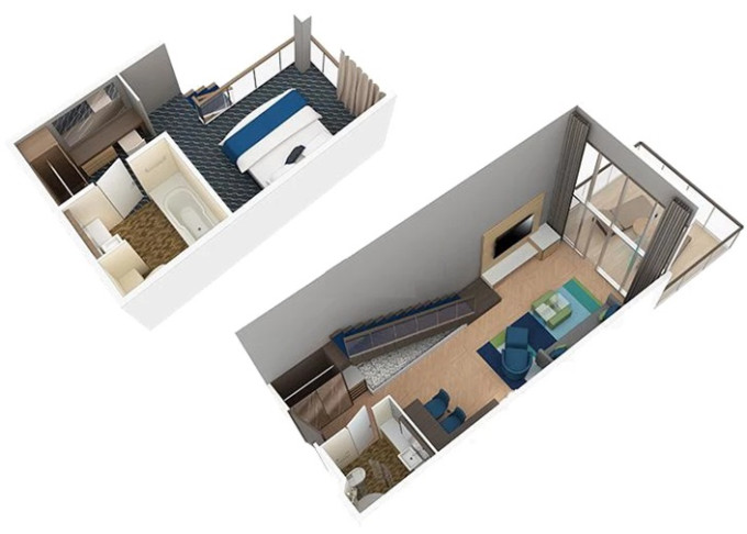 | L1 - Crown Loft Suite s balkonem 50 m² / balkon 10 m². 2-podlažní apartmán. Výhody Royal Suite Class. 17. paluba. Max 4 osoby. | 211 012 Kč 211 012 Kč za osobu | ||