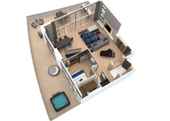 | RL - Royal Loft Suite s balkonem 141 m² / balkon s vířivkou 78 m². 2-podlažní apartmán. Výhody Royal Suite Class. 17. paluba. Max 6 osob. | 513 999 Kč 513 999 Kč za osobu |